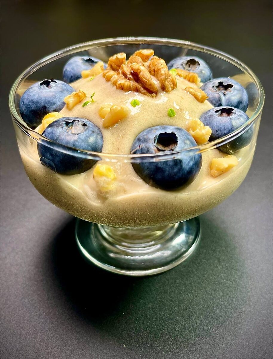 Банановое мороженое Гулять так гулять! Второй рецепт постного мороженого. Казалось бы, какой рецепт десерта можно выложить в день сухоядения? Прекрасное мягкое МОРОЖЕНОЕ!!! Да-да. Мороженое. Ингредиенты 1️⃣ Банан (замороженный) 2️⃣ Грецкий орех и ягоды для украшения Приготовление: 1. Заморозить банан. Очень сильно. В кожуре. У меня в морозильнике всегда лежит пара бананов на случай, если захочется побаловать кого-то мороженым. От мороза кожа его станет такого же цвета, как у жителей страны из которой он к нам приехал. Не бойтесь. Внутри он кремового цвета 2. Достать банан. Разрезать его поперёк на несколько кусков. Снять кожуру 3. Перебить, не размораживая, блендером до состояния пюре. Консистенция - густая Сметана 4. Выложить порционно. 1 порция - 1 банан. Украсить ягодами, орехами, мятой или как у меня листиками свежего тимьяна. Если день не строгий, то можно добавить перед взбиванием кокосовых сливок, а орехи прожарить на сковороде (лучше хрустят) Ангела за трапезой! Ваш