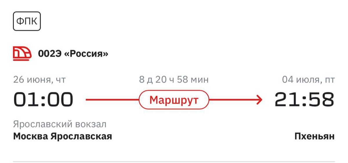 В ответ на пост Уже завтра, в 25 минутах от Мытищ с Ярославского вокзала стартуют прямые поезда до Северной Кореи🥳 До Пхеньяна придется ехать целых 9 дней. Цена удовольствия пока засекречена. Кажется у мазутных пляжей Анапы появился достойный конкурент💯