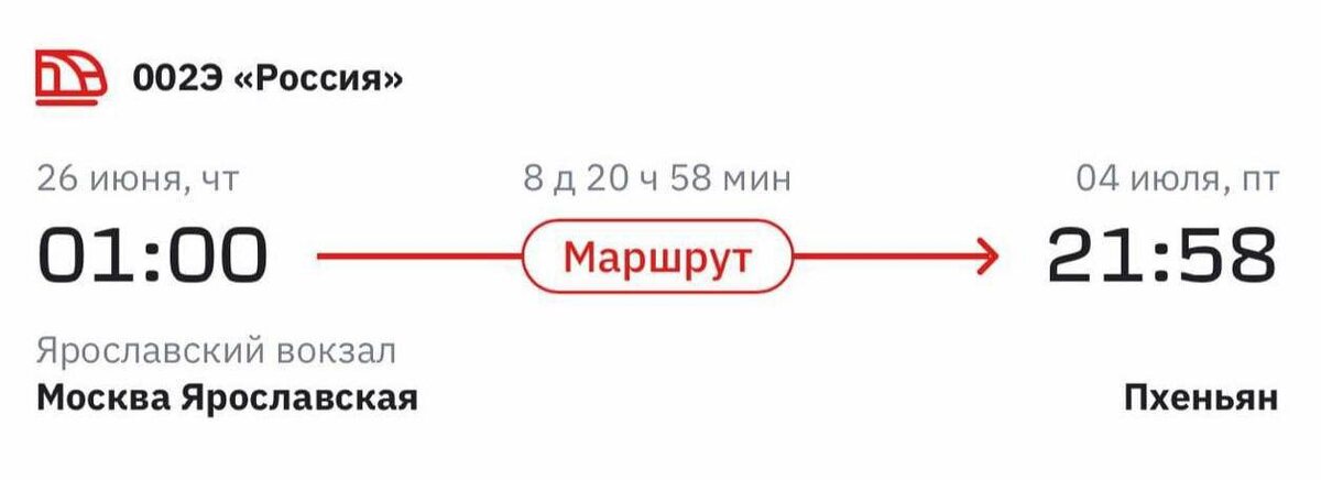 Уже завтра из Москвы отправится первый пассажирский поезд в Пхеньян (Северная Корея). Время в пути — 9 дней. Поезда будут ходить 2 раза в месяц — из Пхеньяна 3 и 17 числа каждого месяца с прибытием в Москву 11 и 25 числа, из Москвы — 12 и 26 числа каждого месяца с прибытием в столицу КНДР 20 и 4 числа.