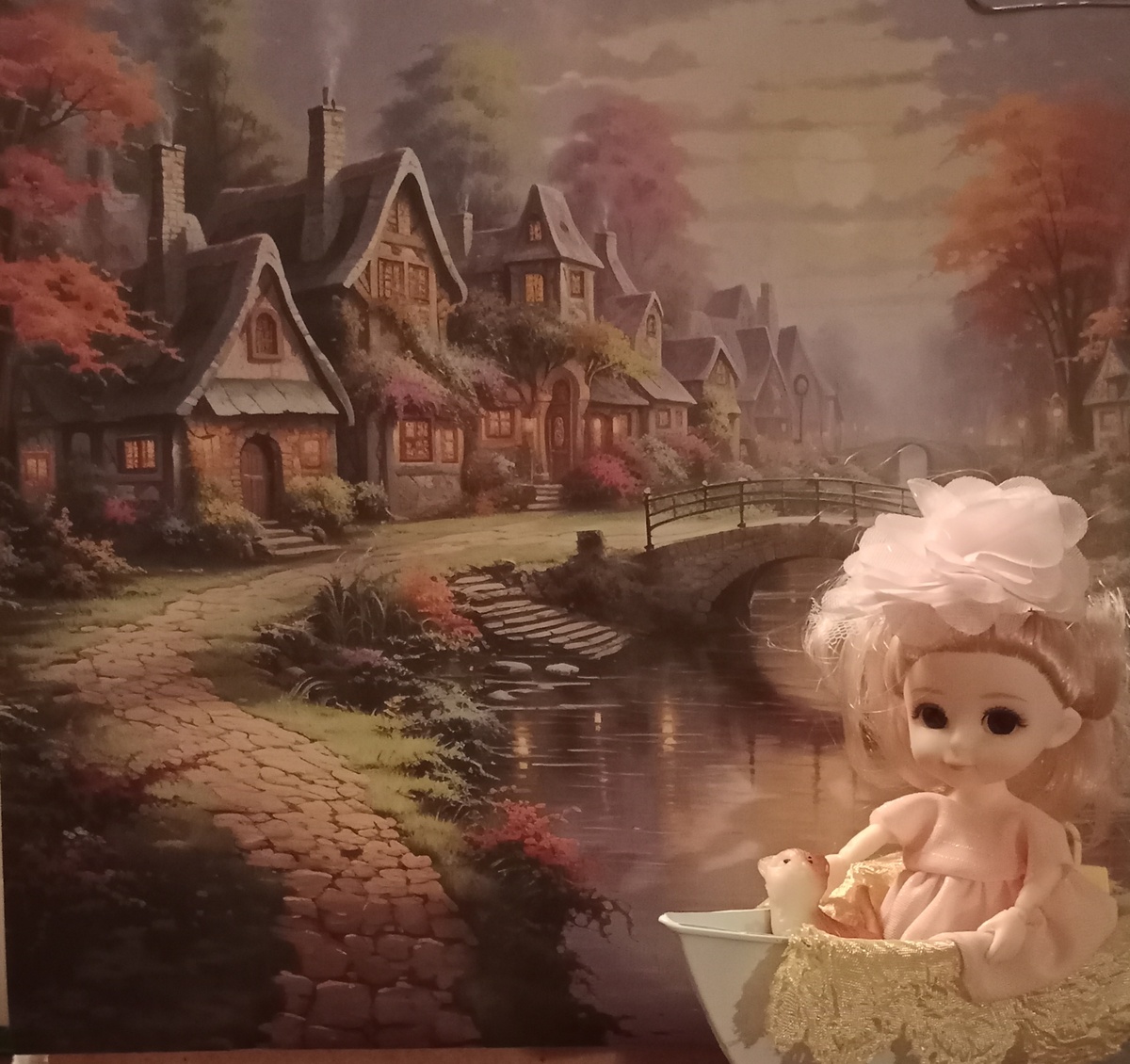 Собираясь летом в путешествие, Марина заинтересовалась: " А феи путешествуют или живут только в своих домиках?" - "Конечно же путешествуют. Особенно в конце июня, когда открывается портал в волшебную страну." Одна маленькая баболька со своей рыжей подружкой решила прокатиться на лодочке по рекам волшебной страны. В этих домиках живут ее давние друзья, отсюда она и начала поездку. А здесь собираются по ночам эльфы и поют своими серебряными голосами. Жаль, сегодня они не пришли. Мельница, где местные жители перерабатывают пшеницу. А гусь, возомнивший себя хозяином реки, решил познакомиться с путешественницей. Не проплыть. Камни и слишком мелко. Лодочку пришлось подтолкнуть. А вот и окончание поездки. Переночевать и поужинать у добрых знакомых и домой.