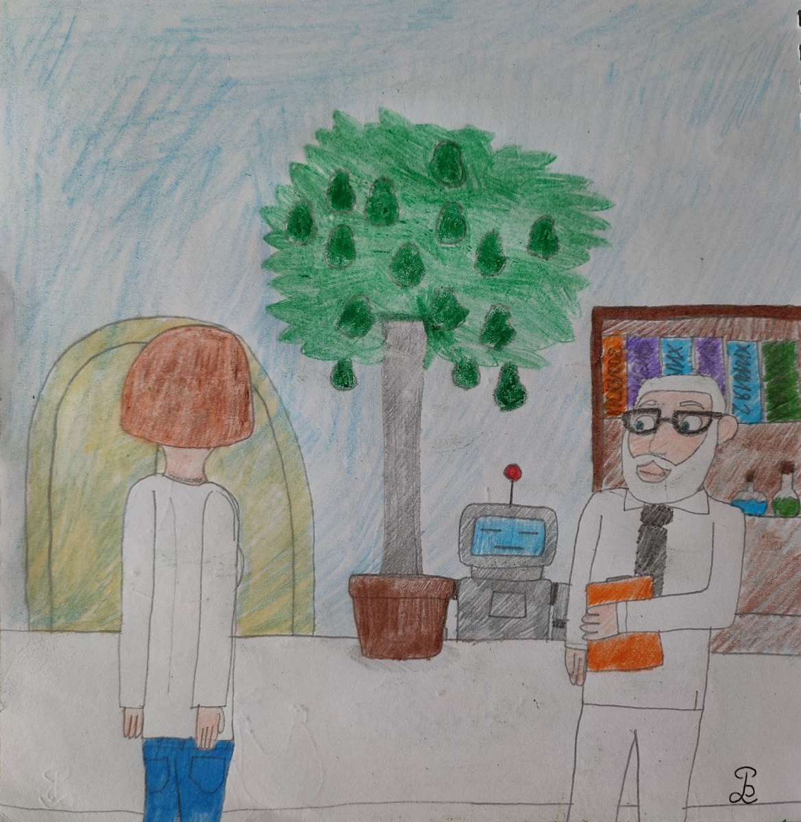 Профессор Филимонов и Ирина отправились в ботанический кабинет и увидели огромное дерево, которое оно было точно так же, как и первое деревце в зале профессора. Секретарь Наумов отнёс горшок с молодым авокадо в свой кабинет. Там он будет наблюдать за растением.