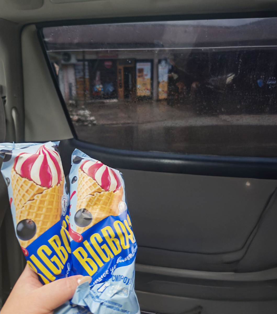 Заехав в город не смотря на ливень мне захотелось зайти в местный магазинчик, за мороженкой)
