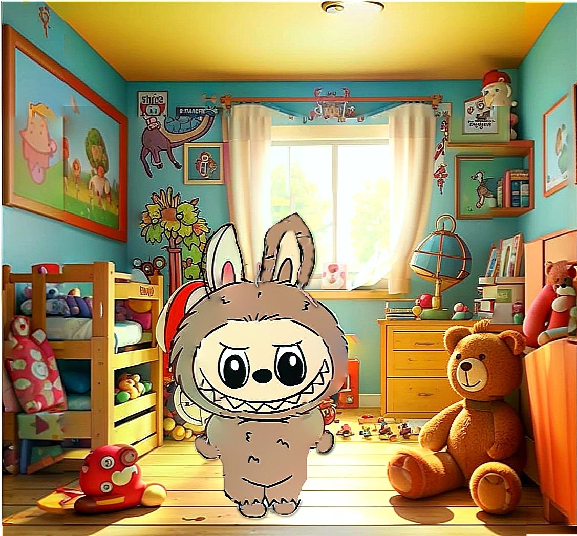 Прошло несколько дней. К девочке пришла в гости одноклассница. Девочка захотела показать ей лабубу, но не нашла его.