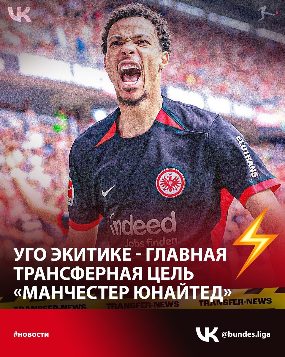 ⚽ Уго Экитике главная трансферная цель «Манчестер Юнайтед». По данным Bild, «Юнайтед» — единственный клуб, который напрямую ведет переговоры с «Айнтрахтом» о приобретении Экитике. 🔥 «Челси» и «Ливерпуль» также претендуют на французского нападающего, но «Юнайтед» уже «вступил в контакт» с гигантами Бундеслиги. «Красные дьяволы» «серьезно» настроены подписать бывшего снайпера «Пари Сен-Жермен». Экитике также открыт для перехода на «Олд Траффорд». Цена на форварда «остаётся прежней» — 85 миллионов фунтов стерлингов 💰