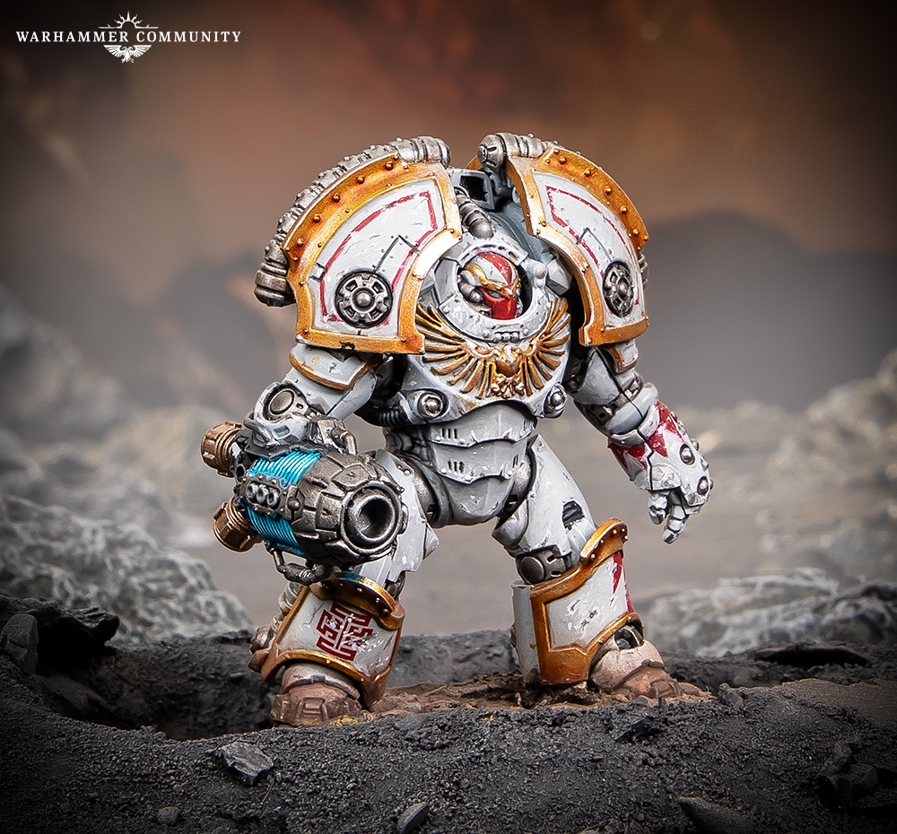 Терминаторы Сатурнин снабжены дополнительными деталями, чтобы идеально подогнать ваши отряды и улучшить претора под нужды вашего Легиона. Каждый терминатор Сатурнин снаряжëн двумя орудиями, по одному на каждой руке. Базовое вооружение, судя по выходящим скоро Либер Астартес и Либер Еретикус, включает в себя одну плазменную бомбарду и один ударный кулак. В правилах быстрого старта, которые есть в наборах Сатурнин, всё оружие дальнего боя, входящее в комплект, обозначено как Пушки Сатурнин. После нескольких тренировочных игр обязательно захочется использовать их профили, которые найдутся в Либер Астартес и Либер Еретикус. Плазменную бомбарду можно заменить сдвоенными тяжёлыми дезинтеграторами, а вместо ударного кулака можно использовать вторую плазменную бомбарду или ещë одни сдвоенные тяжёлые дезинтеграторы. Возможно даже добавить корпускулярный измельчитель на кулак. Есть множество возможностей, чтобы получить преимущества различных вариантов вооружения. Вместе с шестью моделями в коро