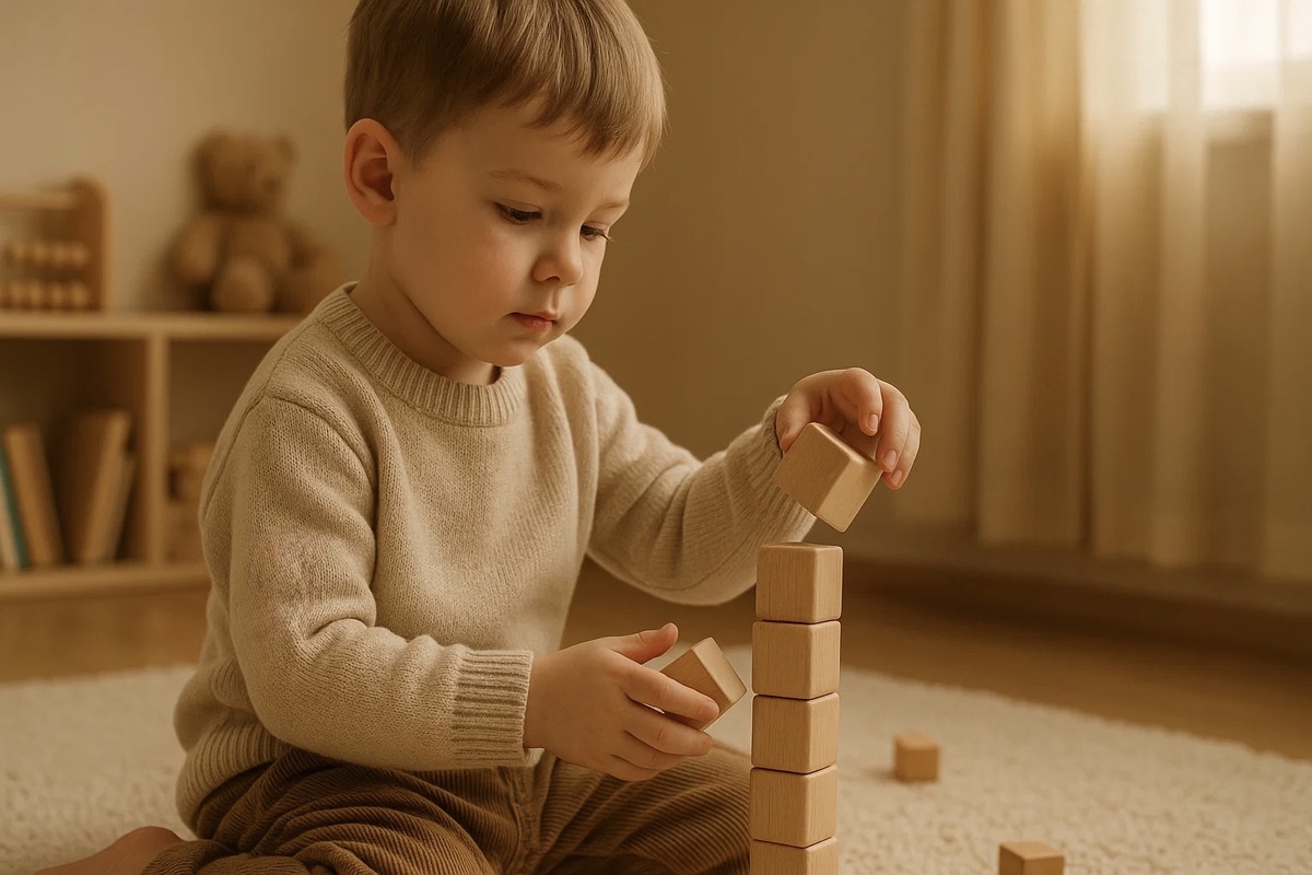 Они прошли в комнату. Мальчик сидел на полу, окруженный деревянными кубиками. Безликие, гладкие. Он не строил — просто перекладывал их с места на место.