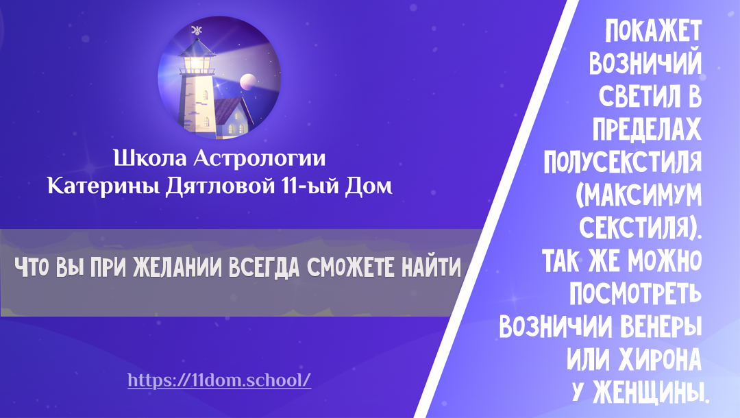 Что вы всегда сможете найти при желании, потому что в этом вы всегда инициативны, либо натыкаетесь на это в связи с обстоятельствами? Покажет возничий светил в пределах полусекстиля (максимум секстиля). Так же можно посмотреть возничии Венеры или Хирона у женщины. Например: © Катерина Дятлова, 2026