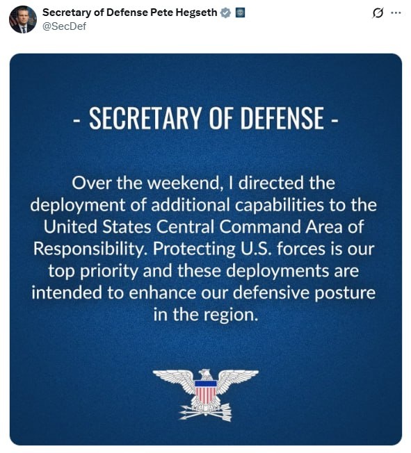US moves ‘additional capabilities’ to Middle East – Hegseth