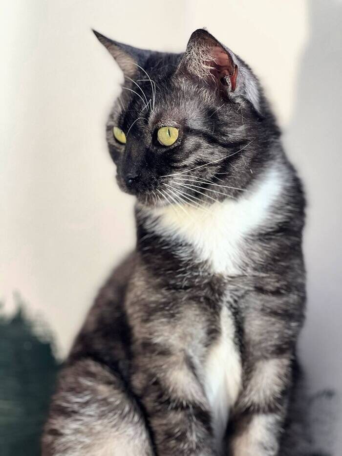 Немного о ней: • 2 Года (+- километр) • Здорова. • Стерильна. • Обработана. • Знает лоток и использует когтеточку (реакция на диваны неизвестна, мягкой мебели у нас нет) Нота - это кошка-мебель. Максимально тактичная, не будет навязываться и лезть в лицо в неудобные моменты. Почесали за ушком - помурчит, не почесали - не обидится. Самостоятельная, взрослая и спокойная. Основную часть дня спит где-нибудь в уютном теплом месте, не тыгыдыкает и не скачет по потолку. Нотой наименована за тоненький мелодичный голос, который абсолютно не похож на кошачье мяуканье. Но услышать его можно нечасто. История ее появления - как и у всех прошлогодних подопечных. Шизичкина квартира, путешествие в лес руками прошлой хозяйки, котоловка, лечение и стерилизация. «Сама ночь» пряталась от нас два месяца а к людям вышла уже глубоко беременная и оголодавшая. У Ноты удалены некоторые зубы, ей это не мешает, но нужен периодический контроль за оставшимися (сейчас ничего не болит и не воспалено). Если будет нужн