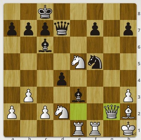 Белые закрылись от шаха ферзем и имеют материальный перевес.