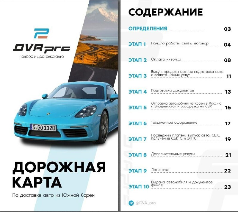 🚗 Хочешь авто, но не знаешь, с чего начать? Часто слышим: «А вдруг обманут?» или «Это же всё сложно, непонятно и дорого…»⠀ Да, рынок полон сомнительных схем и людей, которым важнее взять предоплату, чем реально привезти тебе машину. ⠀Мы это знаем — и поэтому сделали всё наоборот. 📍 Подготовили подробную и честную дорожную карту, где расписали весь путь: от подбора авто в Корее до постановки на учёт в РФ. ➡️ Без мутных формулировок ➡️ Без скрытых платежей ➡️ Только то, что реально важно: сроки, этапы, стоимость и как сэкономить Мы хотим, чтобы ты понимал весь процесс и доверял нам, а не гадал, куда уходят деньги. Посмотреть дорожную карту можно по ссылке — разберёшься за 5 минут, и многое встанет на свои места. А потом просто скажи, какую машину хочешь — и мы привезём её тебе «под ключ» без нервов и переплат. Хочешь рассчитать доставку под ключ или сравнить с другими моделями? Пиши нам в телеграм