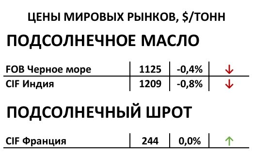 - Подсолнечный шрот - 219,8 $/Т (+8,6 $/Т)