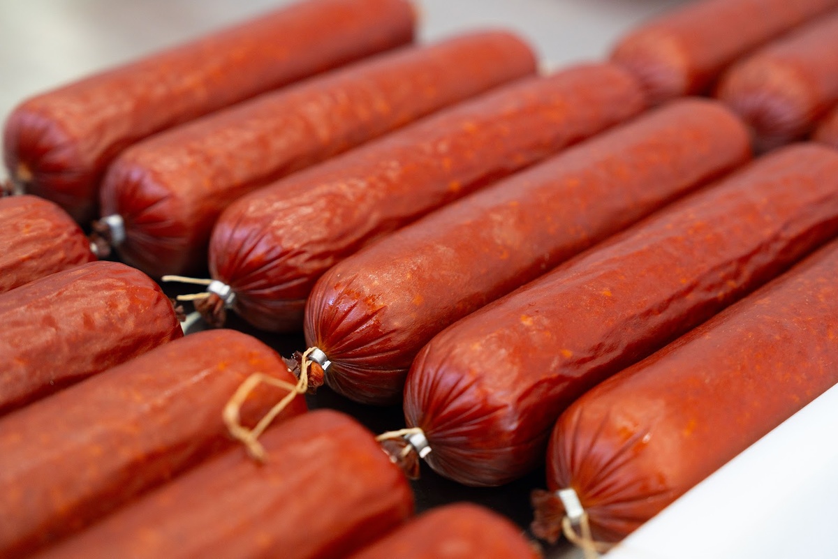 Клипсы автоматически отрезаются, и теперь колбаса