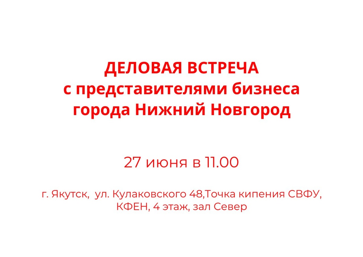 27 июня в Якутске пройдет встреча с представителями бизнеса одного из самых динамично развивающихся регионов страны - Нижнего Новгорода!