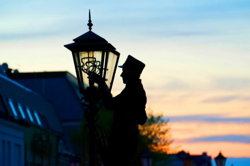 Рабочий день фонарщика был подчинен строгому ритму солнца и состоял из двух ключевых ритуалов. Первый начинался в сумерках. Нагруженный инструментами — канистрой с маслом, ножницами для подрезки фитилей, тряпками для протирки стекол и тяжелой деревянной лестницей на плече — фонарщик отправлялся в свой обход. Каждый фонарный столб был для него отдельной задачей. Он приставлял лестницу, взбирался наверх, открывал стеклянную дверцу, заливал масло, подрезал фитиль до нужной длины (слишком короткий давал тусклый свет, слишком длинный — коптил и быстро сгорал), зажигал его от своего ручного фонаря и, спустившись, переходил к следующему. Второй ритуал начинался перед рассветом, когда нужно было проделать тот же путь, но уже для того, чтобы погасить огни. Этот монотонный труд требовал не только силы, но и пунктуальности, ведь от своевременного зажжения фонарей зависела безопасность целого квартала. В Париже их служба была организована с военной четкостью, а в Санкт-Петербурге, где первые масляные фонари зажглись при Петре I в 1718 году на главных улицах, фонарщики входили в штат полиции, что подчеркивало их роль в поддержании порядка.