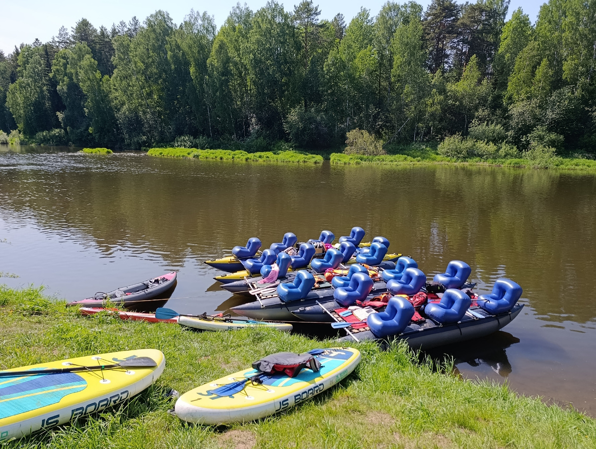 Суббота. Подъем в 07:00. Сбор группы в 08:00 у метро. С собой только личные вещи. Всё остальное предусмотрено организаторами. Маршрут на два дня: деревня Слобода – село Нижнее – деревня Трёка. К месту старта можно было добраться на своей машине, но в этот раз мы решили воспользоваться трансфером. Берега Чусовой в этом районе я видела во время прогулок по экотропам от базы Чусовой и загородного клуба Ключ-Камень. Пришло время полюбоваться ими с воды! Быстрый завтрак в шатре, инструктаж по технике безопасности от одного из инструкторов УРАЛСПЛАВ, распределение по командам. Надеваем спас. жилеты, потихоньку выталкиваем катамаран на воду и вот уже проплываем мимо первых скал Собачьи ребра. Катамараны на маршруты встречались самые разные. Наши с надувными креслами определённо самые удобные. Такие кресла - это опция за доплату, и я нисколько не пожалела. Поясница сказала мне спасибо! Группа на сплав была сборная, и компания собралась большая. И всех нужно было накормить. В программу включены