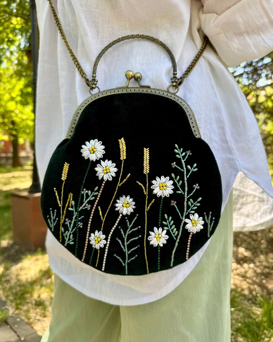 Девушка очень довольна, и я рад, что ей понравилось) Спасибо!», — отзыв от заказчика на сумочку с ромашками.