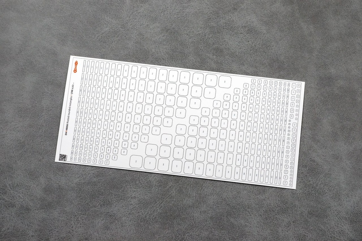 Тверская Emboss выпустила "трехмерную декаль" для имитации заклепочных рядов "скругленные прямоугольники" в масштабе 1/48. Наборы различаются радиусами скругления углов.