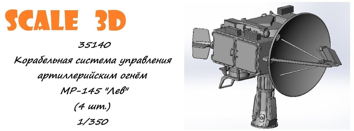 Scale_3D из Новосибирска выпустила на 3D-принтере модель корабельной системы управления артиллерийским огнем МР-145 "Лев" (4 шт. в наборе) в масштабе 1/350: Корабельная система управления артиллерийским огнём МР-145 "Лев" (каталожный номер 35140)