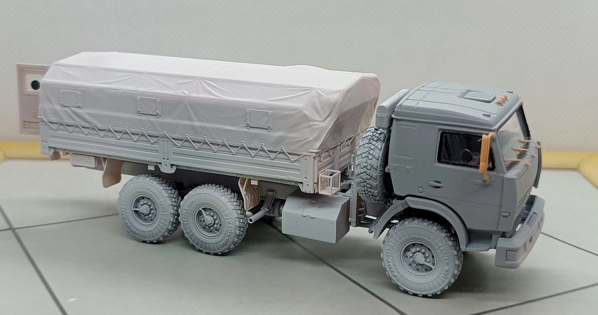 Московская Snake models показала тестовую сборку своей новой модели КамАЗ-5350 с с комплектом дополнительной защиты и защищенным многофункциональным модулем ММ-501 и тентом в масштабе 1/72 из полиуретановой смолы и выращенных на 3D-принтере деталей: Бронированный автомобиль 5350 с комплектом дополнительной защиты и защищенным многофункциональным модулем ММ-501 (тент) - каталожный номер SM72043