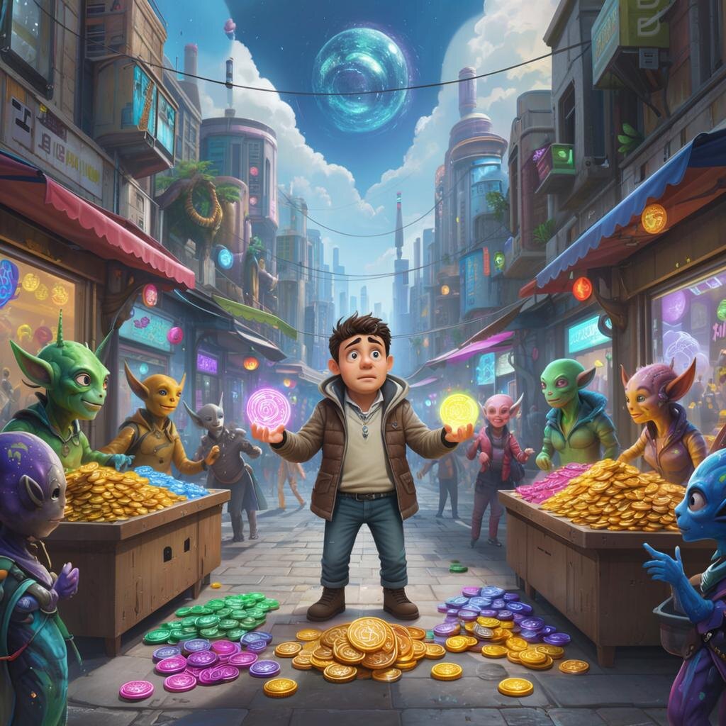На далёкой окраине Вселенной жил парень по имени Хряпа. Именно так его звали с детства, потому что фамилия его звучала загадочно — Харьяпов. Хотя многие считали имя нелепым, но оно идеально подходило Хряпе, ведь сам он был человеком простодушным и немного неуклюжим. Всё свободное время он посвящал поиску новых способов заработать денег. Когда услышал о цветке, сердце забилось чаще. Это было настоящее богатство!