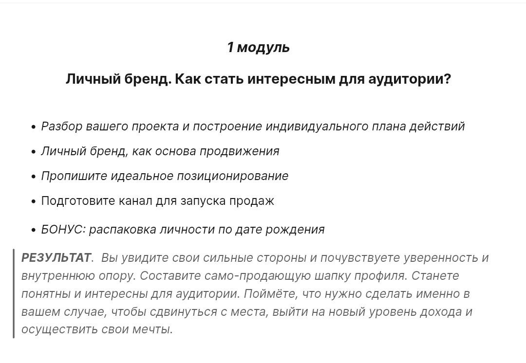 С чего начать и как зарабатывать в тг? Когда вы разберётесь с этим, то уже во время обучения сможете "отбить" его стоимость. Все из каждого утюга говорят, что делать, но... не делают. И это не потому что вам лень или вы какие то плохие. Просто не понимаете всей цепочки ведения клиента от первого касания до покупки. Что нужно знать базово? 🟢как привлекать 🟢как прогревать 🟢как продавать Всё! И мы с вами будем это разбирать на программе "Быстрый старт" Программа специально создана для тех, кто: ➖не понимает, что делать ➖делает, но не получается ➖хочет усилить свой результат "Быстрый старт" дешевле основной программы в 3 раза! Для того, чтобы каждый смог её купить и освоить. Наполнение на скринах выше. Готовы создать систему, которая сама будет продавать? Формат программы: 🟢Первая индивидуальная встреча с построением плана к цели 🟢Созвоны 1 раз в неделю 🟢Ежедневный трекинг и подробная обратная связь 🟢Короткие видео уроки "смотри и делай". Длительность 8 недель. БОНУСЫ: ✔️