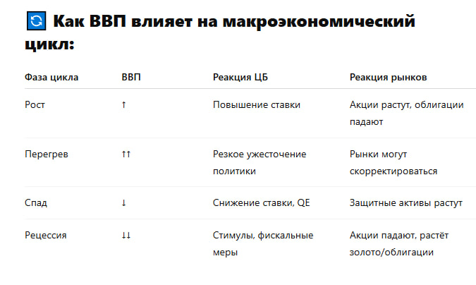 🔵Рост ВВП сигнализирует об ускорении экономики → ЦБ может повысить ставку (борьба с перегревом, инфляцией).