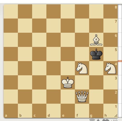 Черный король ловко лавирует между белыми фигурами.