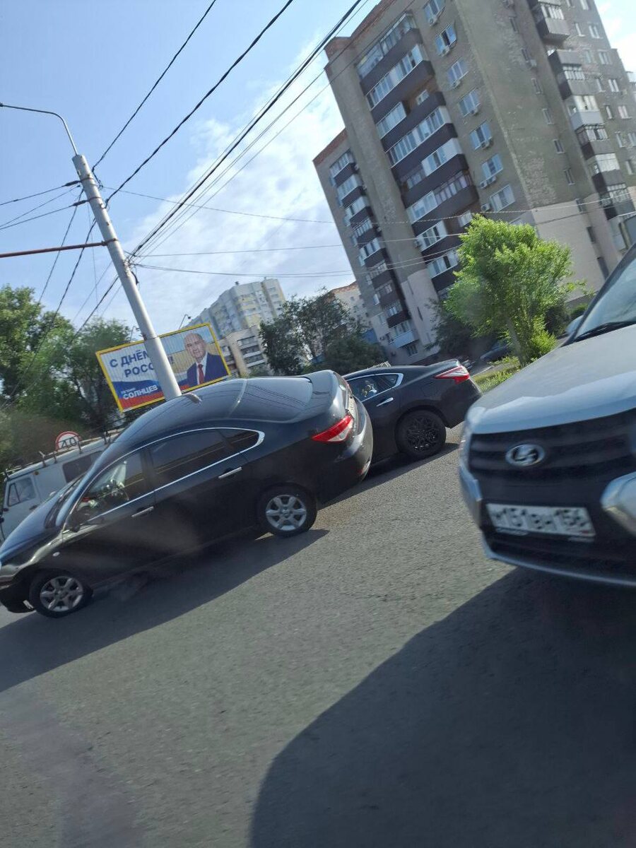 В Оренбурге машина запрыгнула на другой автомобиль на перекрестке Транспортной и проспекта Победы утром.