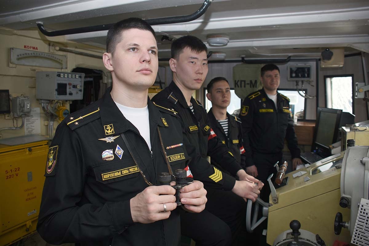 Современные требования, по словам штурмана старшего лейтенанта Максима Кошкина и его подчинённого старшего матроса контрактной службы Даниила Базарова, обязывают постоянно быть в готовности к выполнению боевых упражнений по внезапным вводным, на сложном тактическом фоне, ночью, в неблагоприятных погодных условиях, в комплексе с отработкой задач по борьбе за живучесть, защите от оружия массового поражения. Только в таком случае будет гарантия от любых неожиданностей, диктуемых природой современного боя.