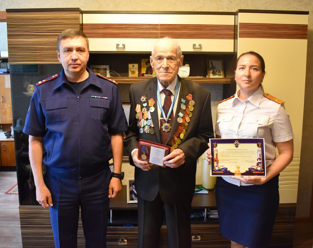 Заместитель руководителя СУ СК России по Сахалинской области Павел Васильевич Курочкин встретился с участником Великой Отечественной войны и вручил ему ведомственную медаль