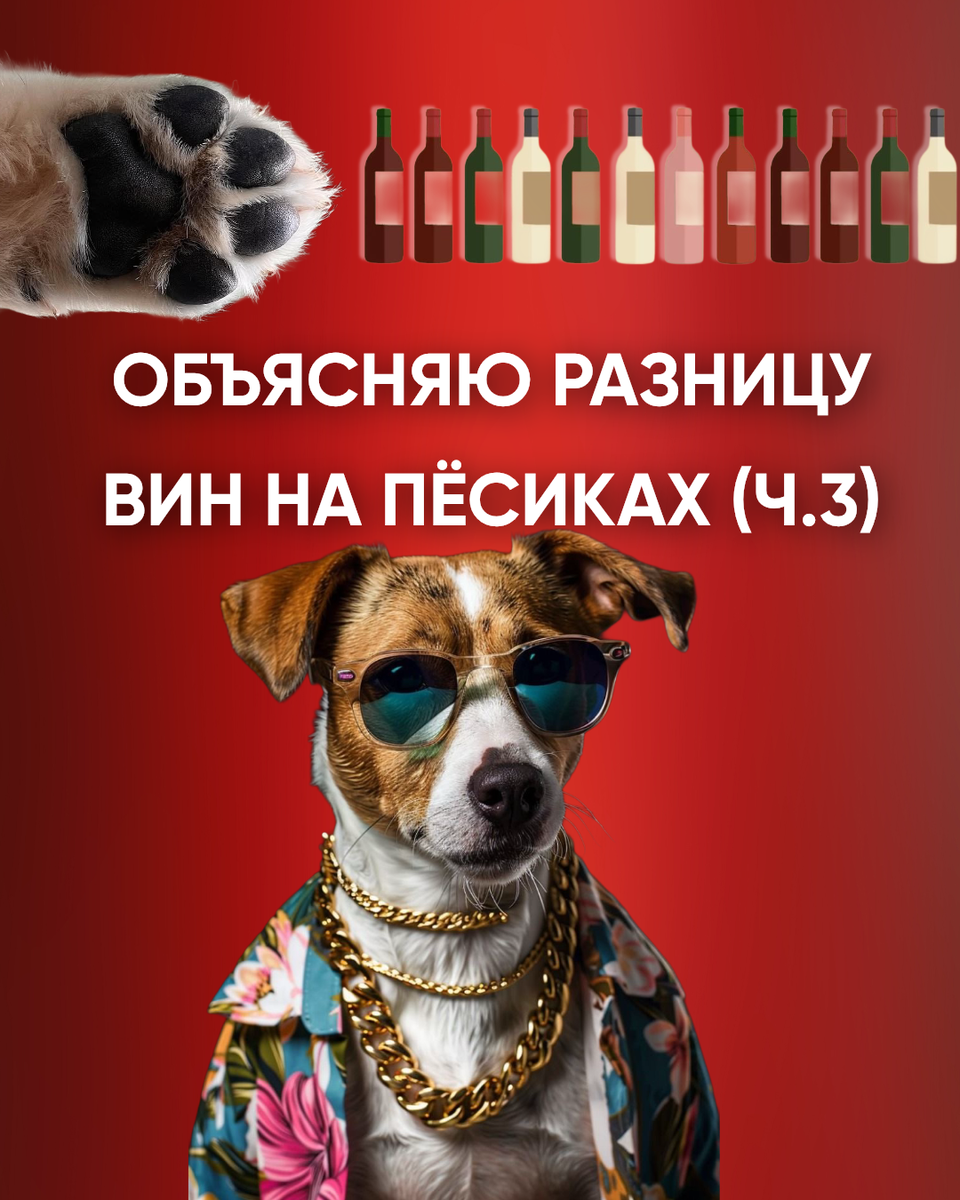 Продолжаю рубрику «Объясняю разницу вин на пёсиках». Листайте карусель и пишите, если нашли своего пёселя! Если вдруг (чисто гипотетически!) у кого-то случайно закрадётся крамольная мысль, что я хотел обидеть дворнягу — немедленно гоните эту мысль прочь! Это всего лишь образ, не более того!