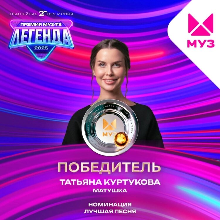 После фееричного исполнения хита "Матушка" в рок-версии Татьяна Куртукова проследовала в зону для СМИ, где первой к ней подошла ведущая телеканала МУЗ-ТВ. Вита Чиковани устроила что-то вроде блиц-интервью с победительницей номинации "Лучшая Песня" Премии МУЗ-ТВ 2025. Легенда.