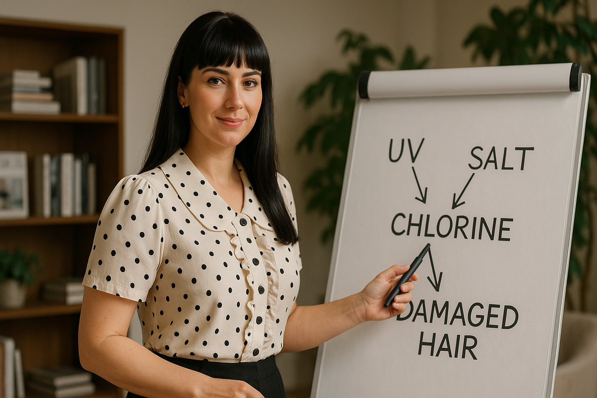 Уверена, вам знакома эта картина, пропитанная запахом солнцезащитного крема и легкого разочарования. Клиентка, сияющая и отдохнувшая, возвращается из отпуска, садится в кресло... и вы обе с тоской смотрите на то, во что превратился ее идеальный холодный блонд. Вместо глянцевого, переливающегося цвета — тусклая пакля с невнятным желто-рыжим оттенком. «Это все море и солнце», — виновато улыбается она. А вы мысленно подсчитываете, сколько часов и сил уйдет на то, чтобы вернуть этому «соломенному чучелу» вид дорогого окрашивания. Лето для колориста — это как полоса препятствий. С одной стороны, поток клиентов, желающих «обновиться к отпуску», а с другой — неизбежная битва с главными врагами цвета: ультрафиолетом, солью и хлоркой. Но что, если я скажу, что эту битву можно не просто выиграть, а превратить в инструмент повышения собственной ценности и среднего чека? Давайте на чистоту: для многих клиентов фраза «специальный уход на лето» звучит как попытка продать что-то ненужное. Наша с вами