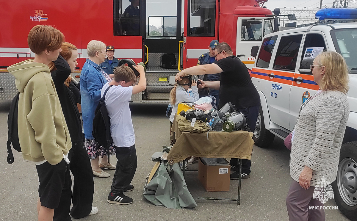 В минувшее воскресенье на ж\д вокзал «Пермь-2» прибыл агитационный поезд «Единство в памяти. Сила в подвиге!». Желающие посетили его вагоны, узнали, для чего применяются беспилотные летательные аппараты, как защищают органы дыхания при пожарах и выбросе химически опасных веществ и где обучают будущих специалистов чрезвычайного ведомства.