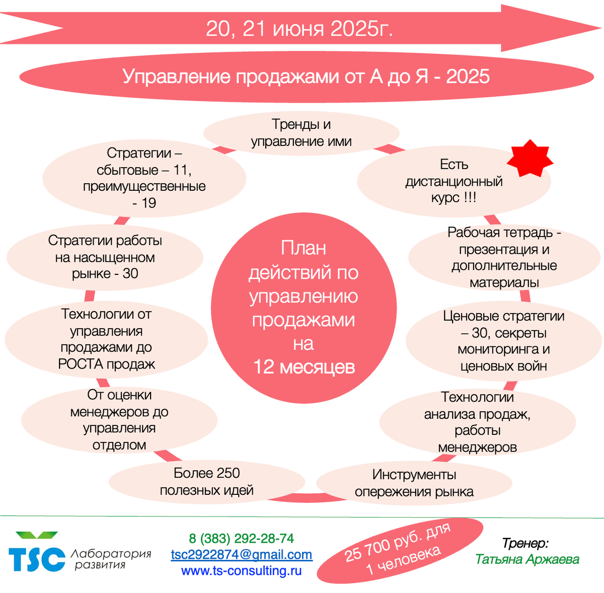 Вся программа этого тренинга максимально заточена на то, чтоб по ее итогам у Вас появился практически готовый план по Управлению продажами на 2025 год с учетом актуальных тенденций, новых инструментов и русского (очень хорошего, кстати) вопроса: «Что делать?»