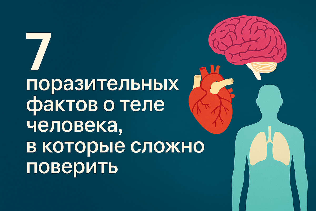 Каждый день мы живём внутри своего тела — но мало кто задумывается, насколько оно удивительно. Вот 7 фактов о человеческом теле, которые звучат как фантастика, но это чистая правда. 1. Ваш мозг не чувствует боли Он управляет всей болью в теле, но сам — не чувствует ничего. Именно поэтому нейрохирурги могут оперировать мозг у пациентов в сознании. 2. Человек «теряет» до 4 кг кожи в год Каждую минуту с нас слетают отмершие клетки кожи — около 30–40 тысяч. За год это почти 4 кг! 3. Желудочная кислота способна растворить металл В вашем желудке — соляная кислота. Она достаточно сильна, чтобы разъесть бритву! Но слизистая стенок постоянно обновляется и защищает нас. 4. Сердце создаёт давление, способное выстрелить кровью на 9 метров Да, звучит жутко — но факт: во время сильного сокращения сердце способно «вытолкнуть» кровь с огромной силой. 5. Уши и нос продолжают расти всю жизнь Это не миф: хрящи и мягкие ткани этих органов изменяются под действием силы тяжести и возрастных процессов.