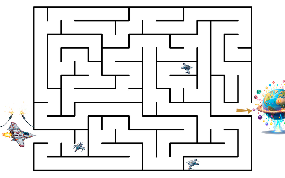 В гиперпространстве у Странника случилась беда - большой сбой в работе электрической сети. Звездолёт выбросило из гиперпространства и он оказался на территории вражеского альянса. Помоги страннику добраться до планеты Фотония, где он сможет отремонтироваться и зарядить гипердвигатели. Избегай вражеских звездолётов-истребителей! Часть 1 Больше лабиринтов можно найти в телеграм t.me/bestmaze