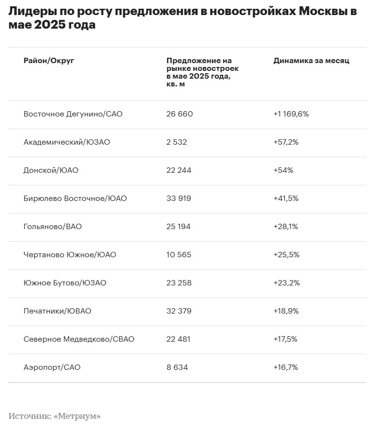 В мае в районе Восточное Дегунино объем новостроек на продаже подскочил до 26,6 тыс. м².