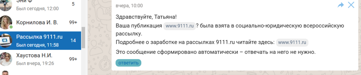 Приветствую пользователей сайта! Вчера в личных сообщениях я увидела сообщение от администрации следующего содержания: Честно сказать, была приятно удивлена, так как давно ни в чем не участвовала! Сразу после этого, моя статья «Пророчества Жириновского! Откуда он все знал? Я поражаюсь его способностям!» https://www.9111.ru/questions/77777777724649034/#8735231 начала набирать обороты просмотров и дочитываний! И уже к сегодняшнему дню эта статья оказалась на верхних позициях в «Выборе читателей»! Скажу больше, она до сих пор там располагается, при том что статью я написала 14 июня и разместила ее в 13.00 того же дня! Хочется сделать вывод и поделиться информацией с теми, кто расстроился из-за того, что отменили конкурс публикаций — всероссийская рассылка работает не хуже! Так что дерзайте и у вас тоже обязательно все получится! Желаю всем удачи! Ссылка для регистрации на сайте 9111 https://www.9111.ru/about/authors/?invite=10162024