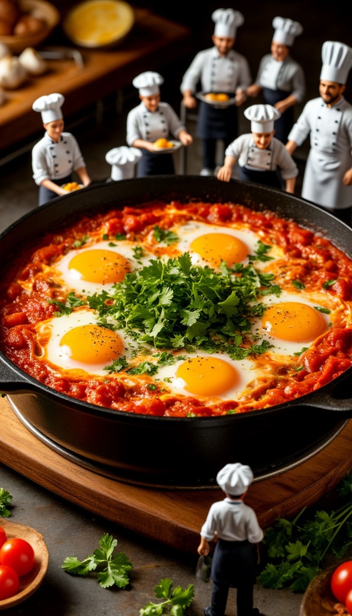 Шакшука: идеальный завтрак для всей семьи История и особенности блюда Шакшука — это не просто яичница, а настоящее произведение кулинарного искусства! Это традиционное блюдо еврейской кухни, которое покорило сердца гурманов по всему миру. Сочные яйца, утопающие в ароматном соусе из овощей — что может быть вкуснее? Ингредиенты Пошаговый рецепт Шаг 1. Разогреваем сковороду со сливочным маслом и обжариваем нарезанный лук до золотистого цвета. Шаг 2. Помидоры очищаем от шкурки, нарезаем кубиками и добавляем к луку. Шаг 3. Нарезаем болгарский перец и отправляем к помидорам. Шаг 4. Добавляем все специи и жарим, пока соус не загустеет. Шаг 5. Делаем ложкой углубления в соусе и аккуратно разбиваем яйца. Шаг 6. Накрываем крышкой и готовим на маленьком огне 7-10 минут. Шаг 7. Посыпаем свежей зеленью и подаем горячим. Секреты приготовления С чем подавать Шакшука прекрасно дополняется: Полезные советы Приятного аппетита! Этот рецепт обязательно станет вашим любимым началом дня. Делитесь свои