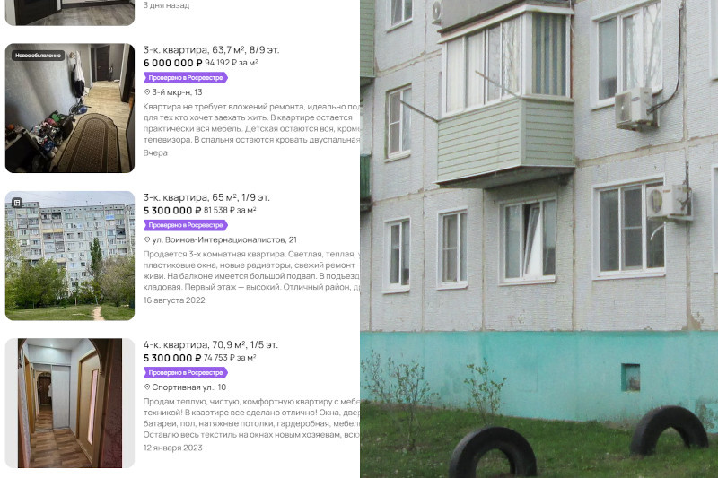 На Авито выставлены 33 квартиры, цена которых превышает 5 млн рублей. Это и перепланированная однокомнатная (фактически «двушка»), а также 2-3-4-комнатные квартиры. Есть относительно новый жилой фонд — улицы Пролетарская и Базарова, пятый и шестой микрорайоны... Есть и предложение ещё царского времени, с дополнением: требуется ремонт.