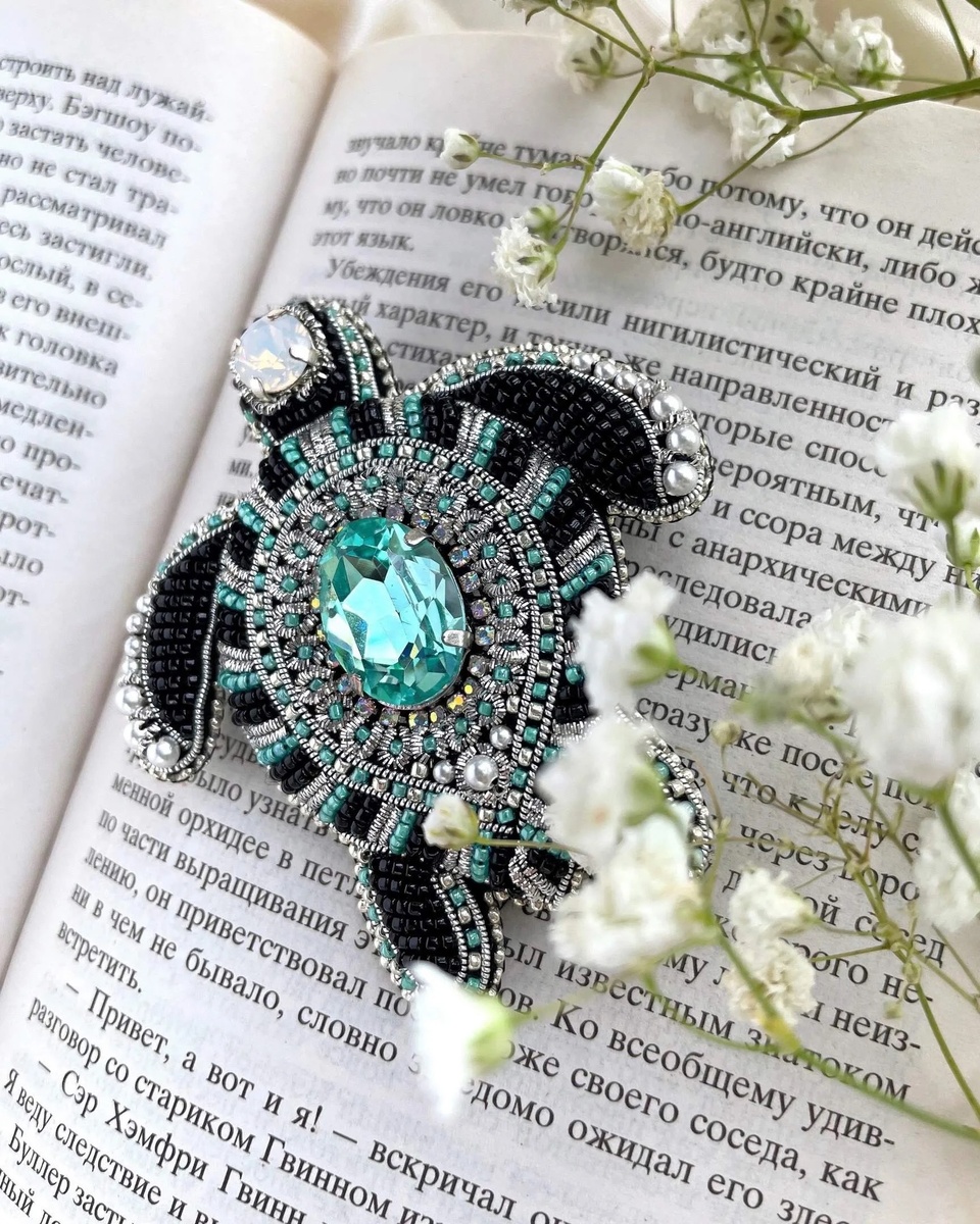 Или это камень натуральный??? Привет, прекрасные! Бисер — это искусство. Одна дама поинтересовалась так про брошь-черепашку. Да, бисер действительно с напылением серебра. Есть и с позолотой. Да, он действительно дорогой, как и в принципе премиальные материалы, только цены на броши у меня не выше рынка. Мне всегда так удивительно, когда работу, которую ты делаешь 7-9 часов хотят купить по цене маникюра в провинции. Это изделие с вами на всю жизнь, тут каждая бисеринка подобрана и пришита вручную. Как можно сравнивать? И я никому свои услуги не навязываю, покупают те, кому нравится. А кто хочет, тот пробует вышивать сам, на этот случай у меня тут более 250 мастер-классов. Благо, такие наезды редкость, причем настолько, что я даже пост решила написать, очень впечатлилась. Теперь давайте представим, что камень был бы правда натуральный. Допустим, голубой топаз в том же размере. Цена за такую брошь начиналась бы от 300 000 рублей, причем свою работу и остальные материалы я даже не прибавляю