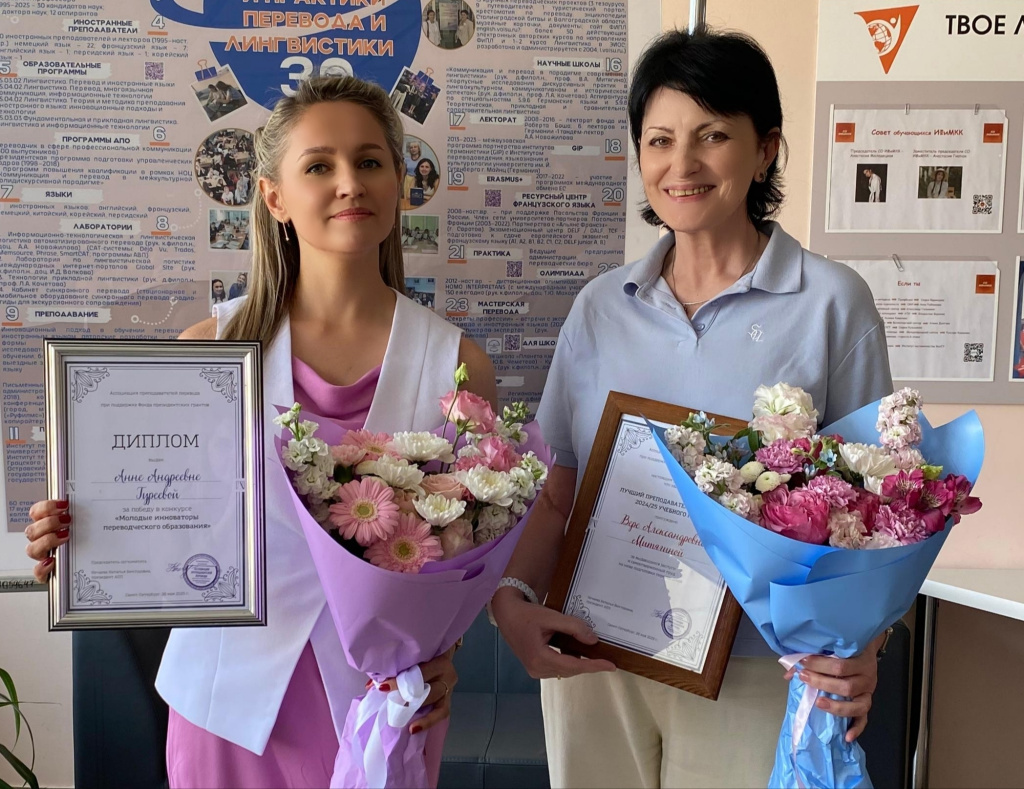 Подведены итоги профессиональных конкурсов Ассоциации преподавателей перевода (АПП), лучшие преподаватели перевода 2025 года отмечены призами и наградами. Победителями стали наставники из вузов Москвы, Казани, Перми, Калининграда, Санкт-Петербурга и Волгограда. Среди награжденных – представители кафедры теории и практики перевода и лингвистики Волгоградского государственного университета. За выдающиеся заслуги и самоотверженный труд на ниве подготовки переводчиков доктору филологических наук, профессору Вере Александровне Митягиной, заведующей кафедрой теории и практики перевода и лингвистики, члену Ассоциации преподавателей перевода присуждено звание «Лучший преподаватель перевода 2024-2025 учебного года». За инновационные подходы в обучении переводу Анна Андреевна Гуреева, кандидат филологических наук, доцент кафедры теории и практики перевода и лингвистики награждена дипломом «Молодые инноваторы переводческого образования» и «Золотым билетом» на Летнюю школу Ассоциации. Эти награды
