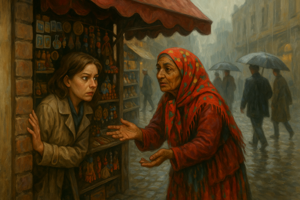 Прячась под козырьком сувенирной лавки, Лариса заметила пожилую цыганку в ярком платке, которая настойчиво ловила взгляды прохожих. Обычно она старалась избегать таких встреч – слишком много мошенников развелось на улицах. Но что-то в глазах этой женщины было особенным. Не жадность, не хитрость, а какая-то тревога.