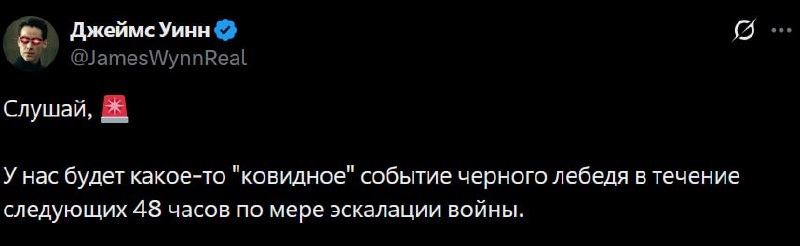 🗣Джеймс Уинн нагнетает ситуацию, он пишет: В течение следующих 48 часов нас ждет своего рода «черный лебедь» вроде «ковида», поскольку война будет обостряться. По мере того, как новости обрушатся на весь мир, страх охватит все финансовые рынки. Самые умные из самых умных денег будут покупать ваш страх, потому что они понимают макроэкономику и не обращают внимания на войну, ковид, жилищный кризис 2008 года и т. д. Происходит следующее... ИНЪЕКЦИЯ ЛИКВИДНОСТИ. Также известное как СНИЖЕНИЕ СТАВОК...