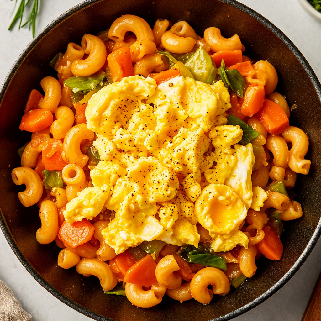 Макароны, яйцо и чуть овощей — быстрый ужин за 100 руб.