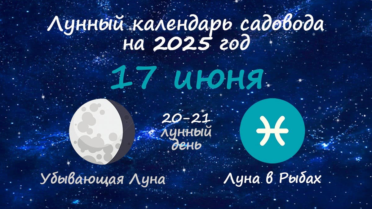 Лунный посевной календарь садовода на 17 июня, вторник, 20-21-й лунный день. 🌖 Убывающая Луна находится в Рыбах ♓️ 🟢 РЕКОМЕНДУЕТСЯ 🟢 Сеять и сажать любые растения – знак Рыб этому благоприятствует. Можно умеренно полить, прополоть и осторожно разрыхлить землю на грядках, в цветниках и приствольных кругах деревьев и кустов. Подкормите растения под корень органическим удобрением, однако соблюдайте меру: избыток питательных веществ редко приносит растениям пользу. Выкопайте цветочные клубни и луковицы. Сделайте прививки, нарежьте и посадите на окоренение черенки, прищипните побеги для усиления их ветвления. Постригите траву на лужайках и газонах. Займитесь заготовкой на зиму сена, закладкой органики в компост и сбором лекарственного сырья. 🟡 ВОЗМОЖНО 🟡 Сеять и сажать: 🔸 баклажаны, помидоры, болгарский перец и перец чили; 🔸 арахис, фасоль, чечевицу и бобы; 🔸 мангольд, дайкон и пастернак; 🔸 тыквы и огурцы; 🔸 савойскую, брюссельскую и пекинскую капусту. Сейте базилик, укроп и ц