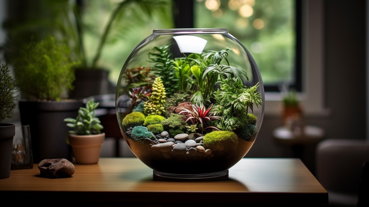 Флорариум - это миниатюрный сад, созданный в прозрачной емкости, который становится не только стильным элементом декора, но и настоящей экосистемой. Он идеально подходит для выращивания растений в условиях ограниченного пространства, таких как квартиры или офисы. Прозрачные стены флорариума создают эффект теплицы, поддерживая стабильный микроклимат с повышенной влажностью, что позволяет растениям чувствовать себя комфортно. Флорариумы представляют собой стеклянные или пластиковые контейнеры различных форм и размеров, внутри которых можно выращивать декоративные растения. Флорариумы бывают открытыми и закрытыми. Эти мини-садики становятся прекрасным украшением интерьера, помогают создать уголок природы даже в городских условиях и не требуют сложного ухода. Создание флорариума - это не только интересное, но и медитативное занятие. Процесс включает выбор емкости, подготовку слоев грунта и посадку растений. Основой любого флорариума является прозрачная емкость. Это может быть аквариум, с