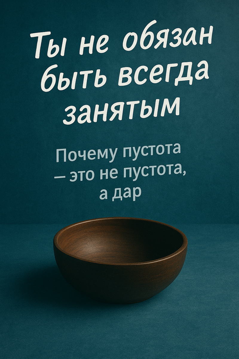 «Ты должен быть продуктивным», — говорили мне. «Девушки должны быть заняты», — внушали. И вот ты мчишься: если остановлюсь — я лентяй. Если отдохну — я проиграл. Но эта гонка выжигает. Она не даёт дышать. Не даёт быть. 🧠 Глава 2. Пустота — не яма, а колодец
